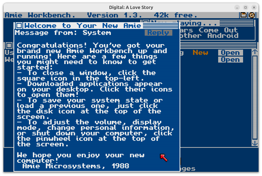 Второе письмо - от операционной системы. Объясняет, как выполнять основные действия: закрыть окно, запустить скачанное приложение, сохранить/восстановить состояние игры, изменить громкость звука и прочее.