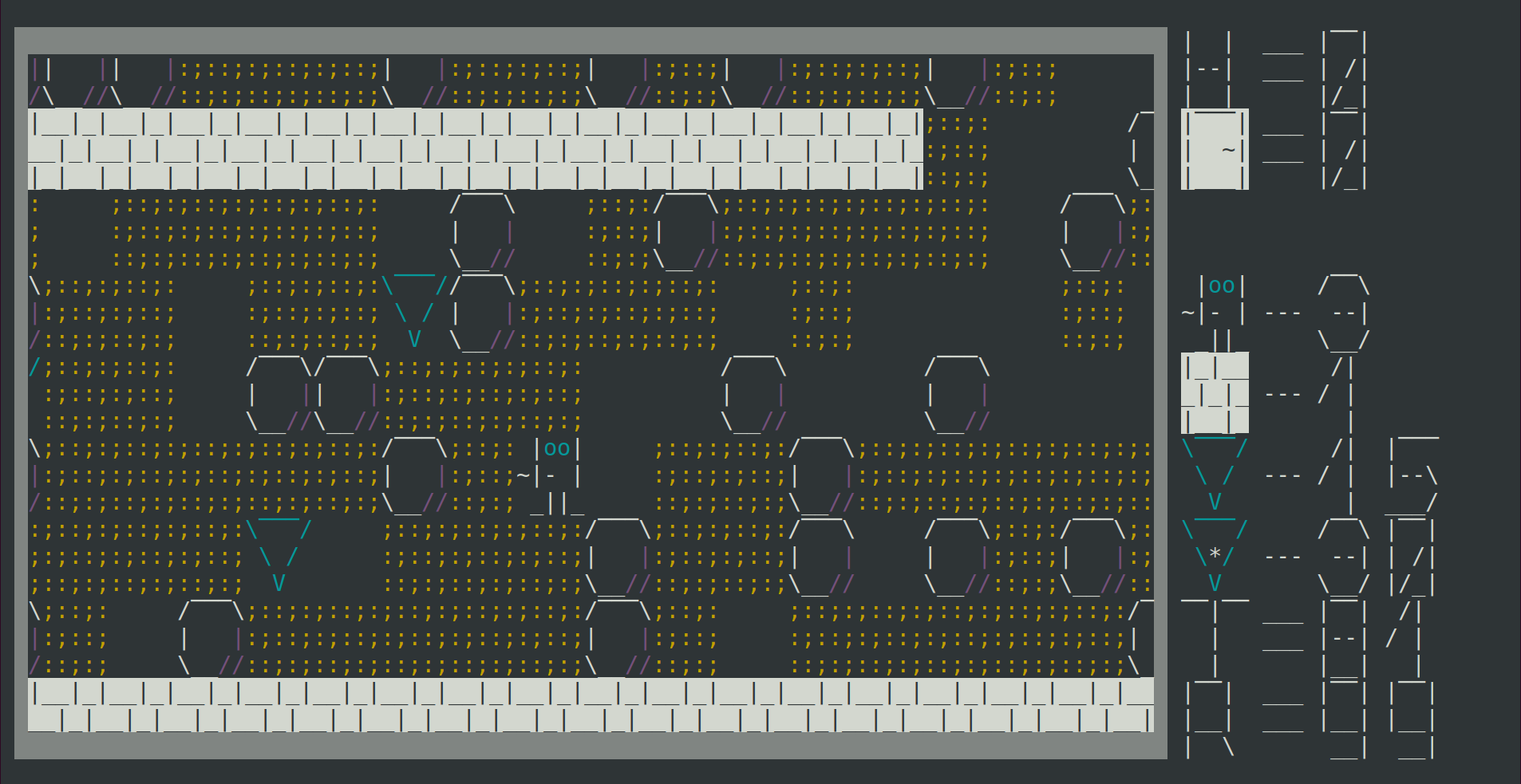 Я подумал: а как бы игра смотрелась в текстовом режиме, но со всякими современными эмоджи. Нашёл исходники на Scala и на скорую руку переделал на Go. Заодно посмотреть, как выглядит в Go библиотека tcell, заменяющая традиционный ncurses.