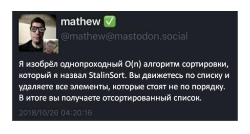 Date: 2020-05-16 18:50 (UTC)Впрочем, какой-нибудь менее брутальный вариант "книжная сортировка" типа "сортируем, но выбрасываем дубли", пройдёт условия и профессионалов (см F* tutorial).